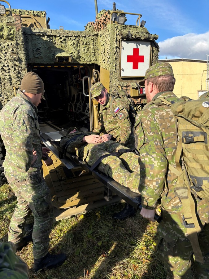 V ďalšej časti mjr. Ing. Róbert Blcha kadetom objasnil miesto poľnej mobilnej zdravotníckej jednotky Role 2E v organizačnej štruktúre vojenského zdravotníctva a následne predstavil kadetom samotnú štruktúru poľnej mobilnej zdravotníckej jednotky Role 2E. Kadetom boli sprístupnené a vysvetlené funkcie niektorých modulov Role 2E, ktoré sú kontajnerového typu ISO 1C. Najväčší záujem prejavili pri ukážke funkčnosti zdravotníckeho automobilu BOV 8x8 AMB Patria, kde si pod odborným dohľadom vyskúšali nakladanie a vykladanie pacienta z vozidla a do vozidla.