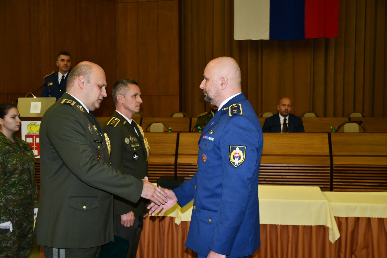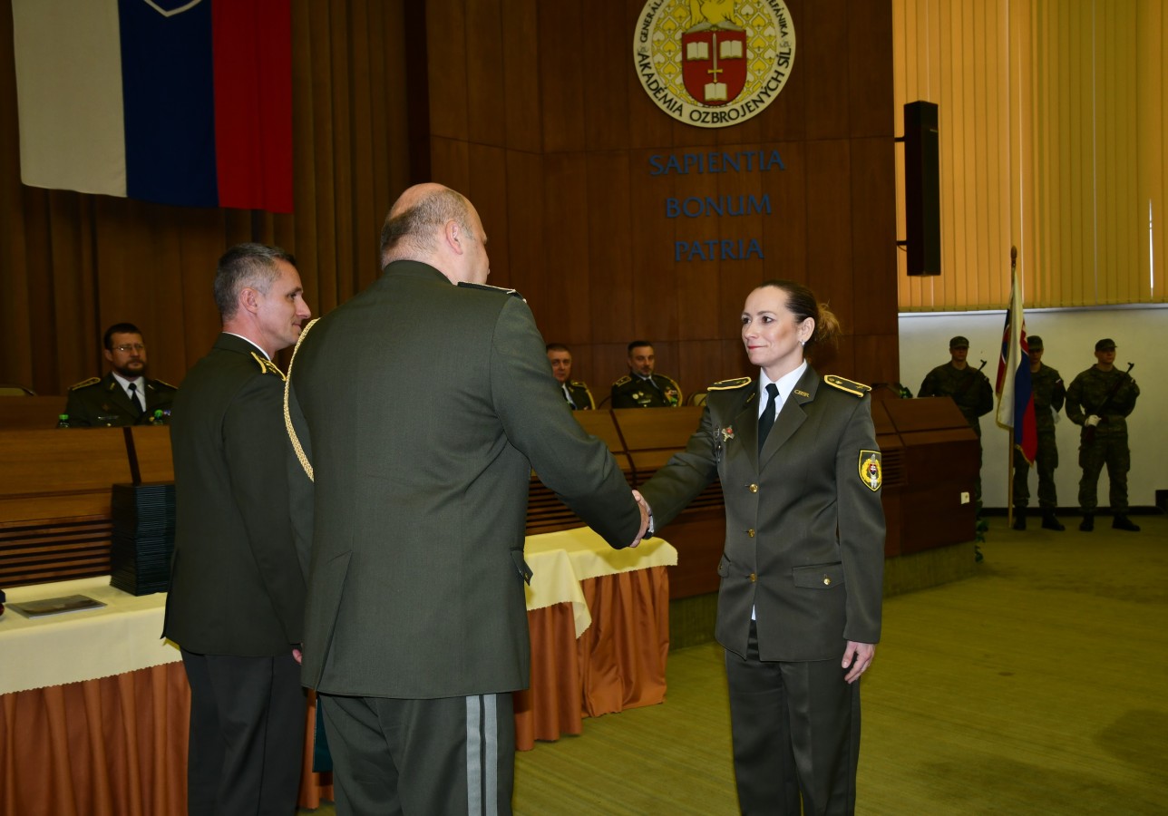 Slávnostného ukončenia kurzu sa zúčastnili rektor Akadémie ozbrojených síl brig. gen. Ing. Aurel Sabó, PhD., generálny riaditeľ sekcie personálnych a sociálnych činností MO SR JUDr. Martin Rímeš, zástupca náčelníka Generálneho štábu OS SR – náčelník štábu brig. gen. Ing. Marek Banas, prorektor pre vzdelávanie AOS plk. doc. Ing. Michal Turčaník, PhD., prorektor pre vojenské veci AOS plk. Ing. Jaroslav Kompan, PhD., riaditeľ Centra vzdelávania AOS plk. Ing. Roman Kráľ a náčelník oddelenia národných kurzov pplk. Ing. Martin Chovanec, PhD., ktorí úspešným absolventom odovzdali odznak absolventa a osvedčenie o absolvovaní kariérneho vzdelávania a popriali im veľa pracovných úspechov v nových funkciách v prospech rezortu MO SR.